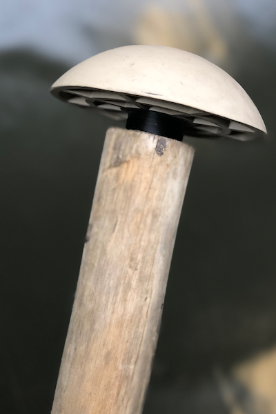 Les mâts sous la toile sont munis d'une coupole afin de ne pas déchirer la toile ni la déformer. Les coupoles s'emboitent en hauts des mâts disposant d'un axe prévu à cet effet. Cette pièce est en EPDM de couleur sable de 15cm de diamètre